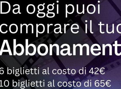 L'ABBONAMENTO 10 da 65,00€ per 10 ingressi e l'ABBONAMENTO 6 da 42,00€ per 6 ingressi, consentono di utilizzare fino a 2 biglietti al giorno, sono validi per tutti i film e le sale senza limiti di giorni (compresi i festivi), hanno una scadenza di 6 mesi dall'emissione e possono essere acquistati sia in biglietteria che online.